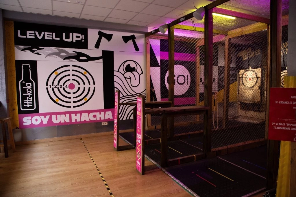 ¡Un local de tiro con hacha lleno de detalles arcade!